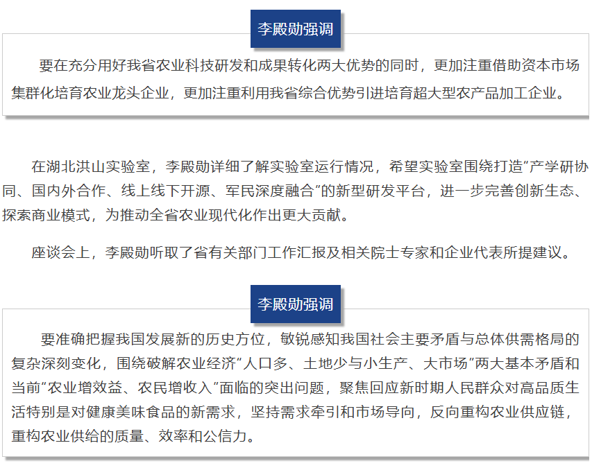 8月28日,省委副書記、省長李殿勛在武漢市調研現代農業發展時強調,要深入學習貫徹習近平總書記關于“三農”工作的重要論述和考察湖北重要講話精神,依靠“農業科技創新和農村綜合改革”兩大動力,加快推動全省農業現代化和鄉村全面振興。