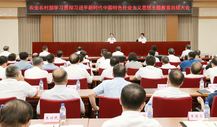 網訊 9月8日,農業農村部召開學習貫徹習近平新時代中國特色社會主義思想主題教育總結大會,深入學習貫徹習近平總書記重要指示精神,落實中央主題教育第一批總結暨第二批部署會議要求,總結部系統主題教育工作,對鞏固拓展主題教育成果作出安排。受農業農村部黨組書記、部長、部主題教育領導小組組長唐仁健委托,部黨組成員、副部長、部主題教育領導小組副組長鄧小剛主持會議并講話。中央第三十五指導組副組長楊建平到會指導并講話。會議強調,部系統各級黨組織要以這次主題教育總結為新的起點,常抓不懈、久久為功,不斷鞏固拓展主題教育成果,全面強化黨的建設,為做好新時代新征程三農工作提供堅強政治保證。